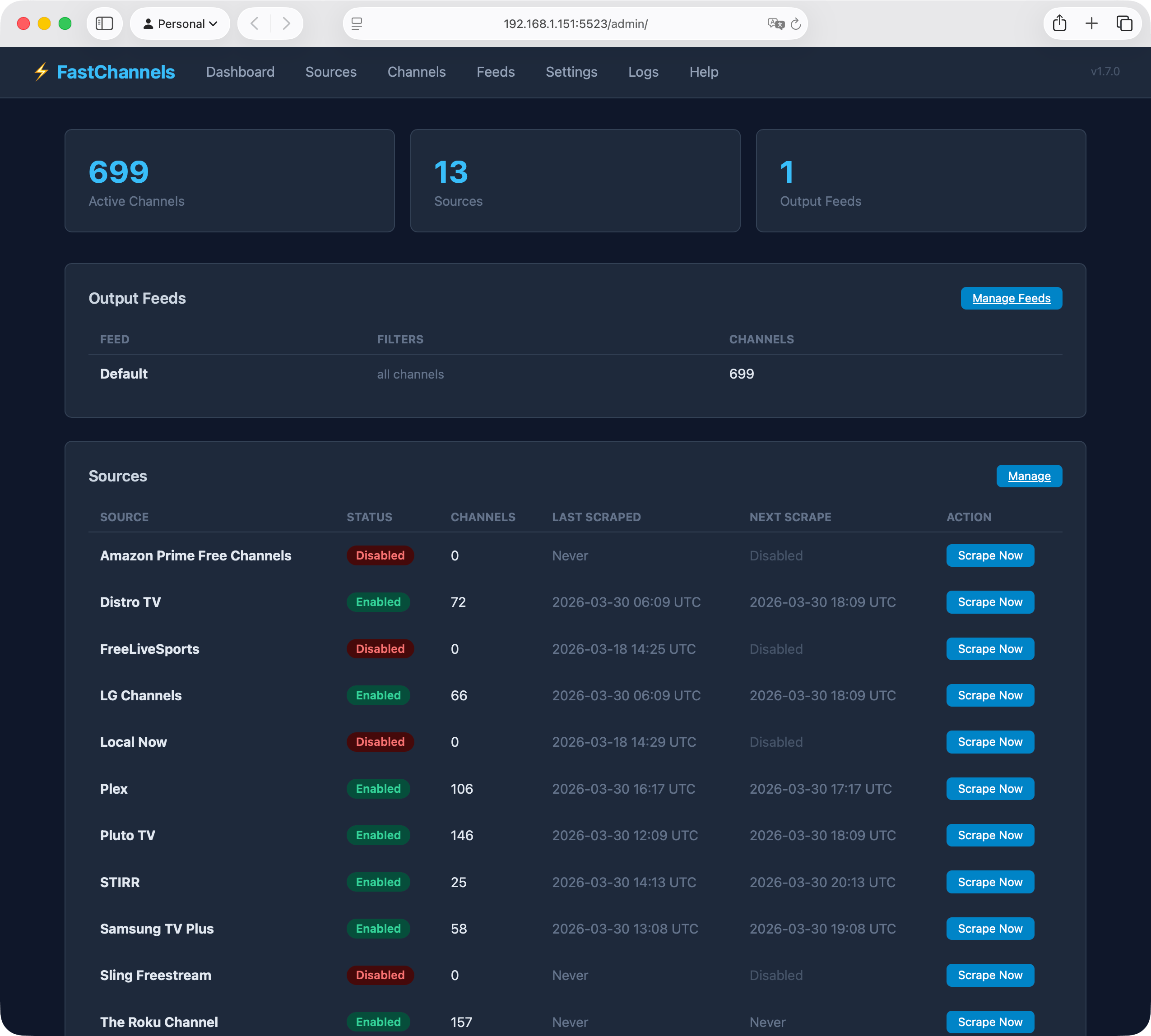Add and manage Free Ad Supported Television from multiple providers into Channels.